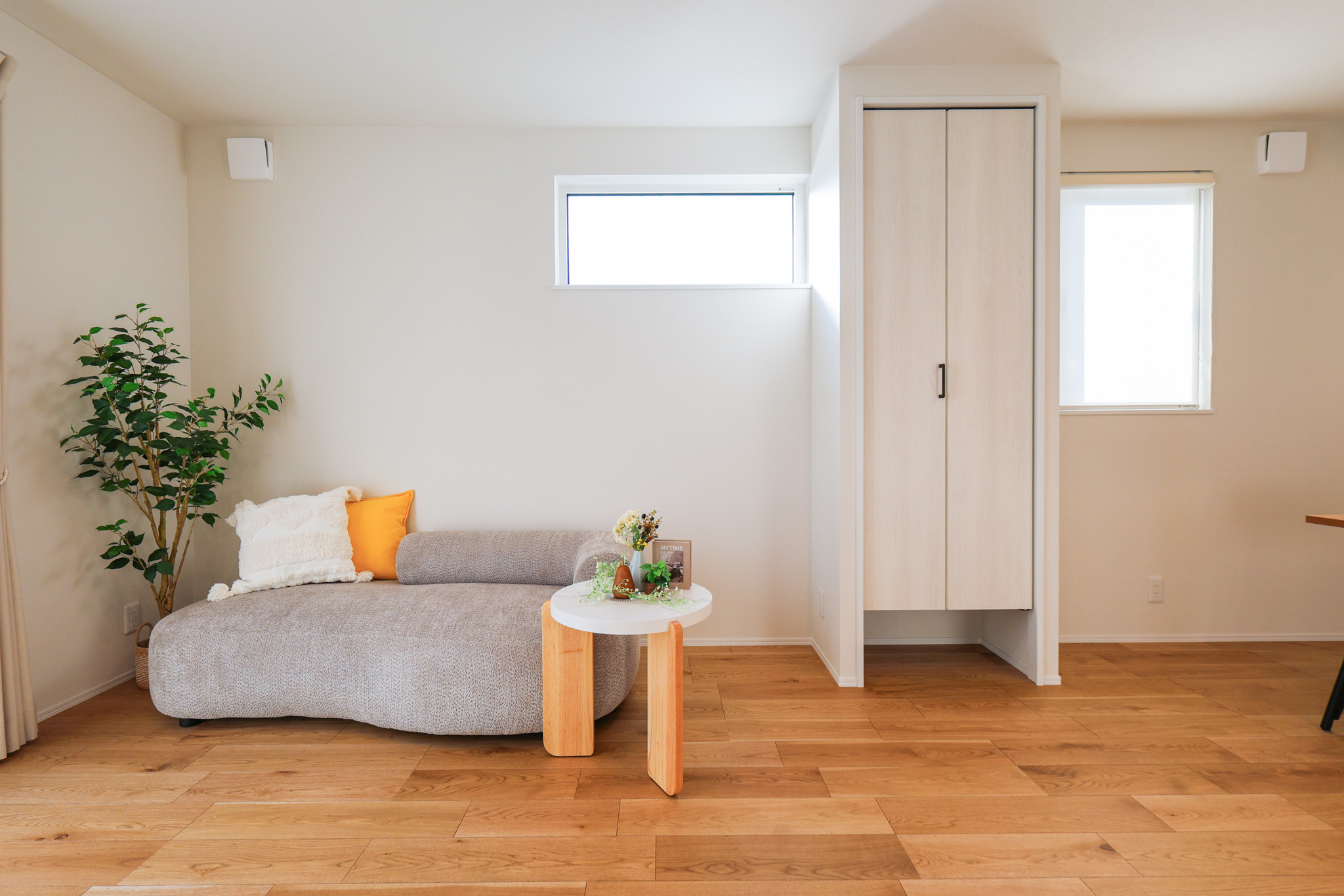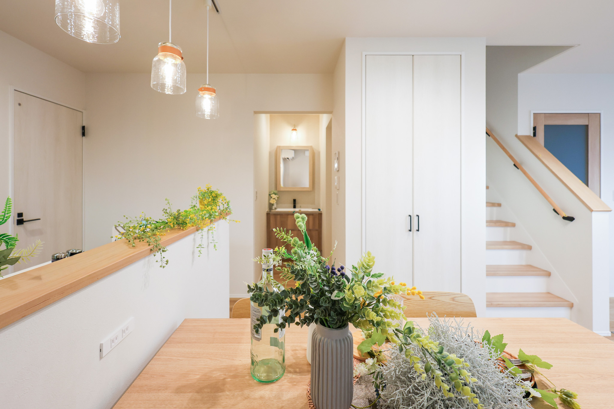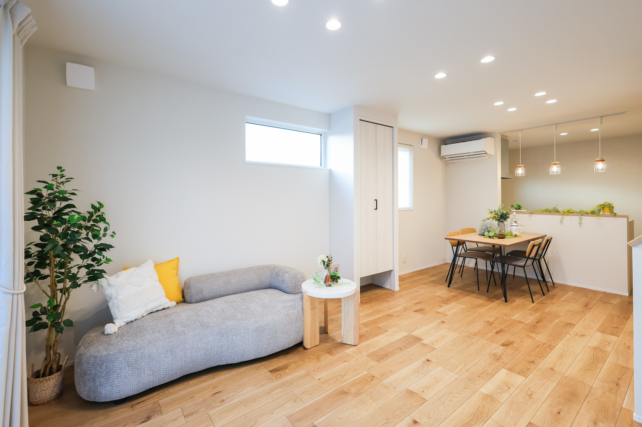 LDKには使いやすい位置に収納を配置。必要な場所にしまえることで、散らかりにくく整った空間を保てます。ルンバ専用スペースを確保し、見えない場所に定位置を。生活感を抑えながら、すっきりとした暮らしを叶えます。