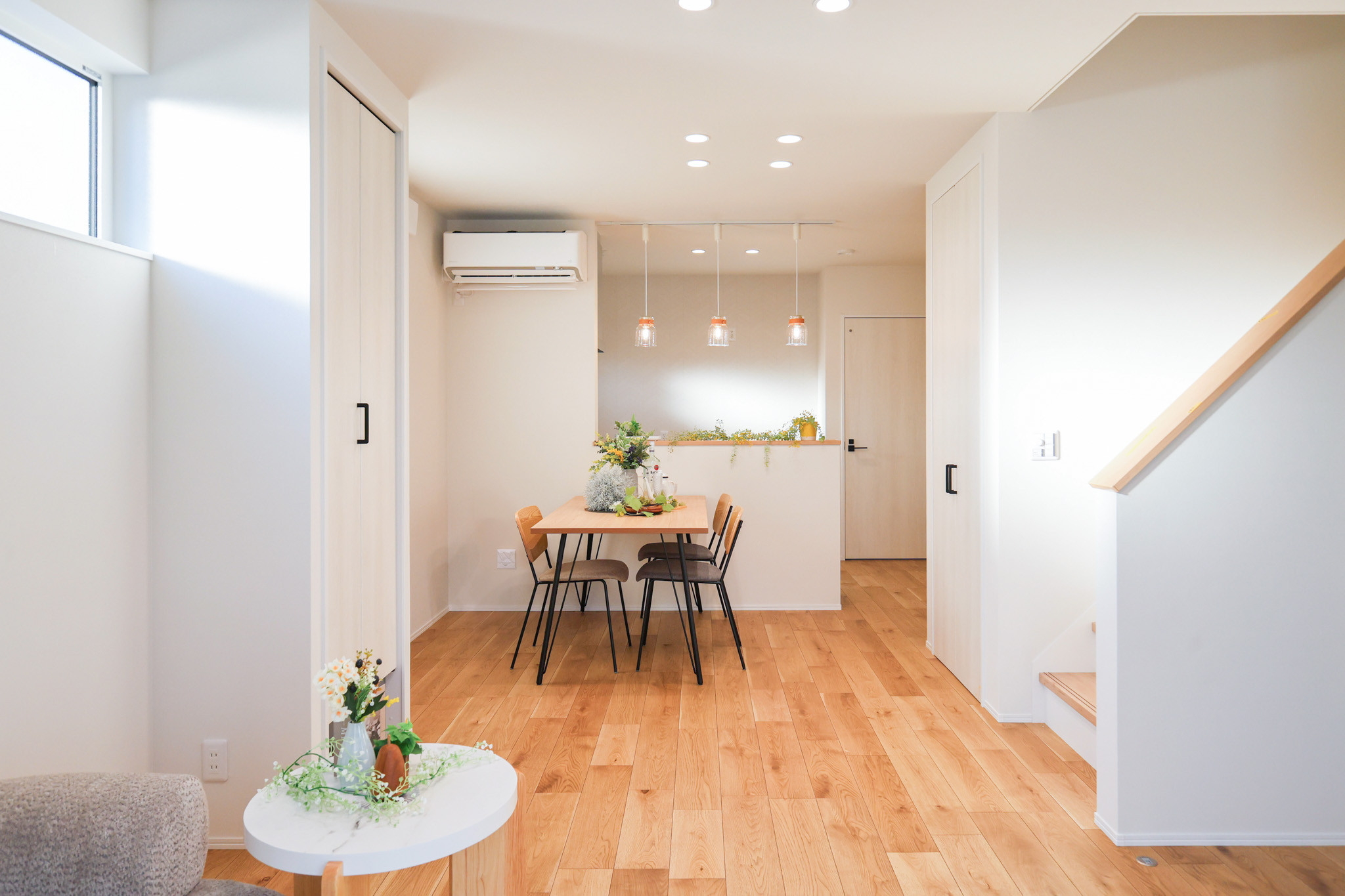 リビングとダイニングそれぞれに光が入る設計。日中は自然光で明るく、心地よい空間が広がります。