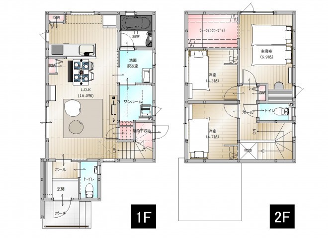 コンパクトながら無駄のない住みやすい間取りに仕上がりました。 主寝室にはワークスペースのあります。