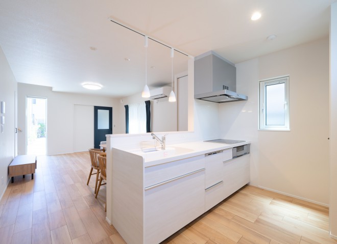 ダイニングでゆったり家族団らん。 対面式でお食事の準備や後片付けも◎