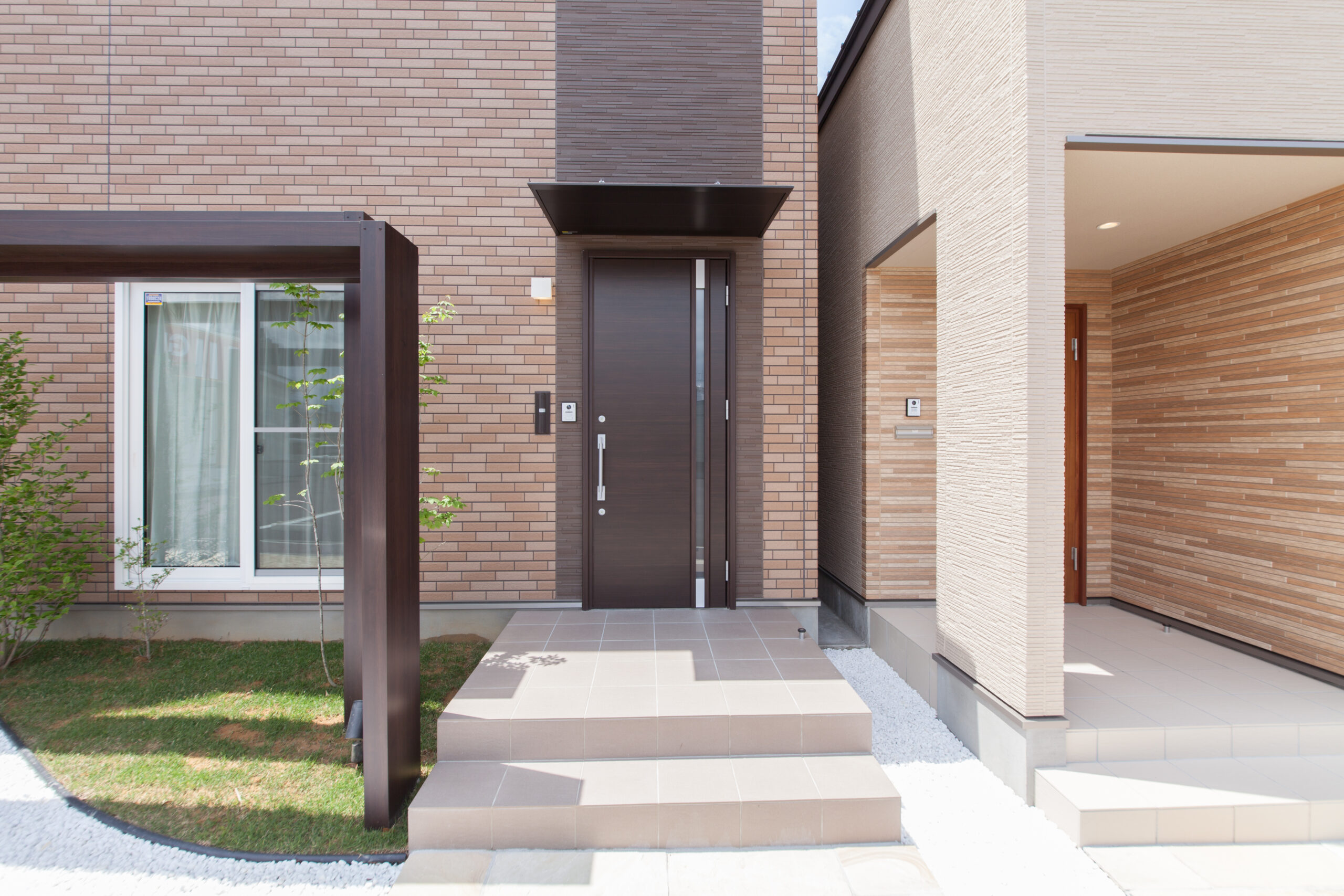 ブラウンを基調に仕上げた玄関までのアプローチが、落ち着きと上質感を演出。こだわりのテイストが日常にさりげない彩りを添え、帰るたびに心地よさを感じられる住まいです。