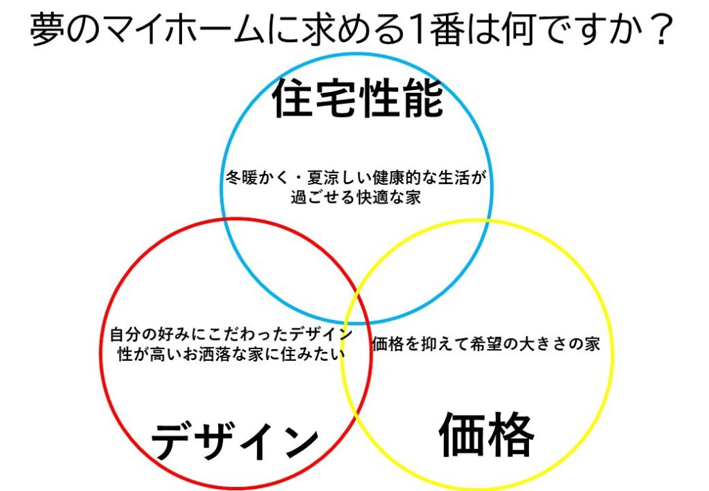 家づくりを始める際にはまずは「性能」なのか、「デザイン」なのか「価格」なのか、