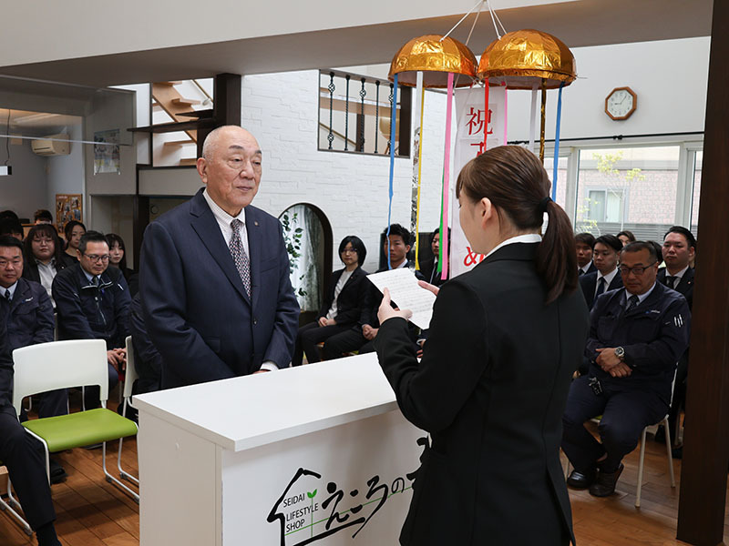 入社式では、株式会社セイダイホールディングス代表取締役会長兼社長の