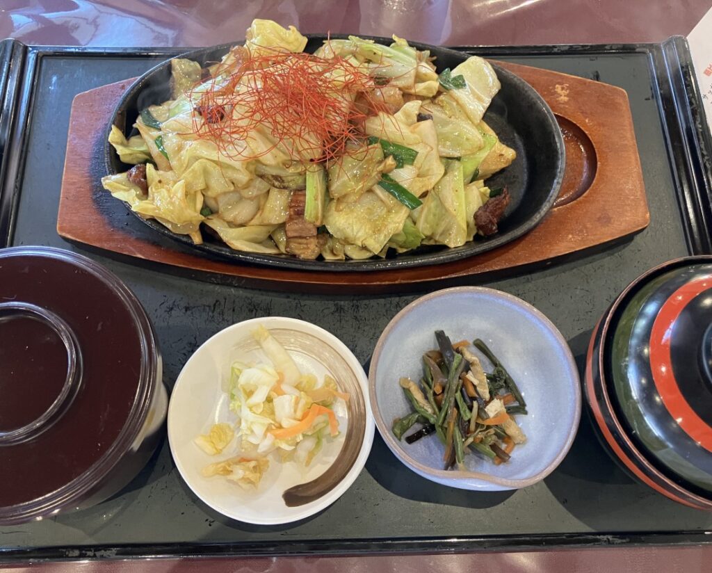 某○○○場のレストランで食べられる『ホルモン焼き定食』です。