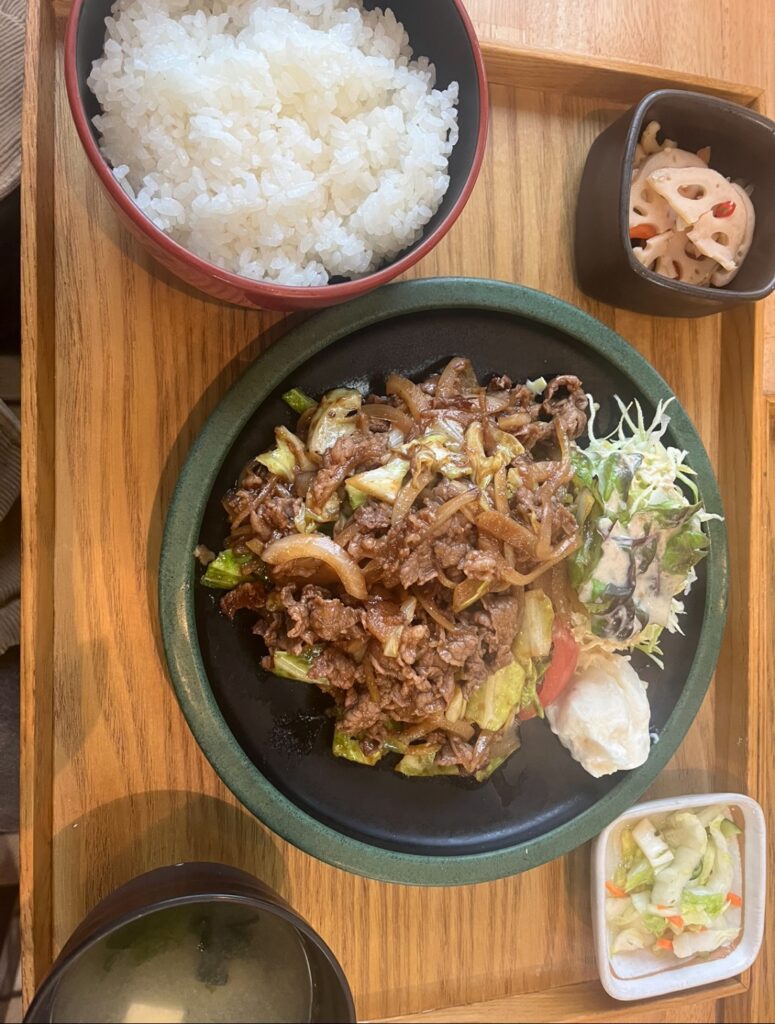 先日朝礼で話した定食屋さんの、肉炒め定食です。