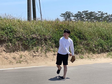 当時、僕と山田さんは草野球にはまっておりBBQをしに来たはずなのにグローブを持ってきており、合間にキャッチボールをしておりました。もちろんお酒も飲んでます。
